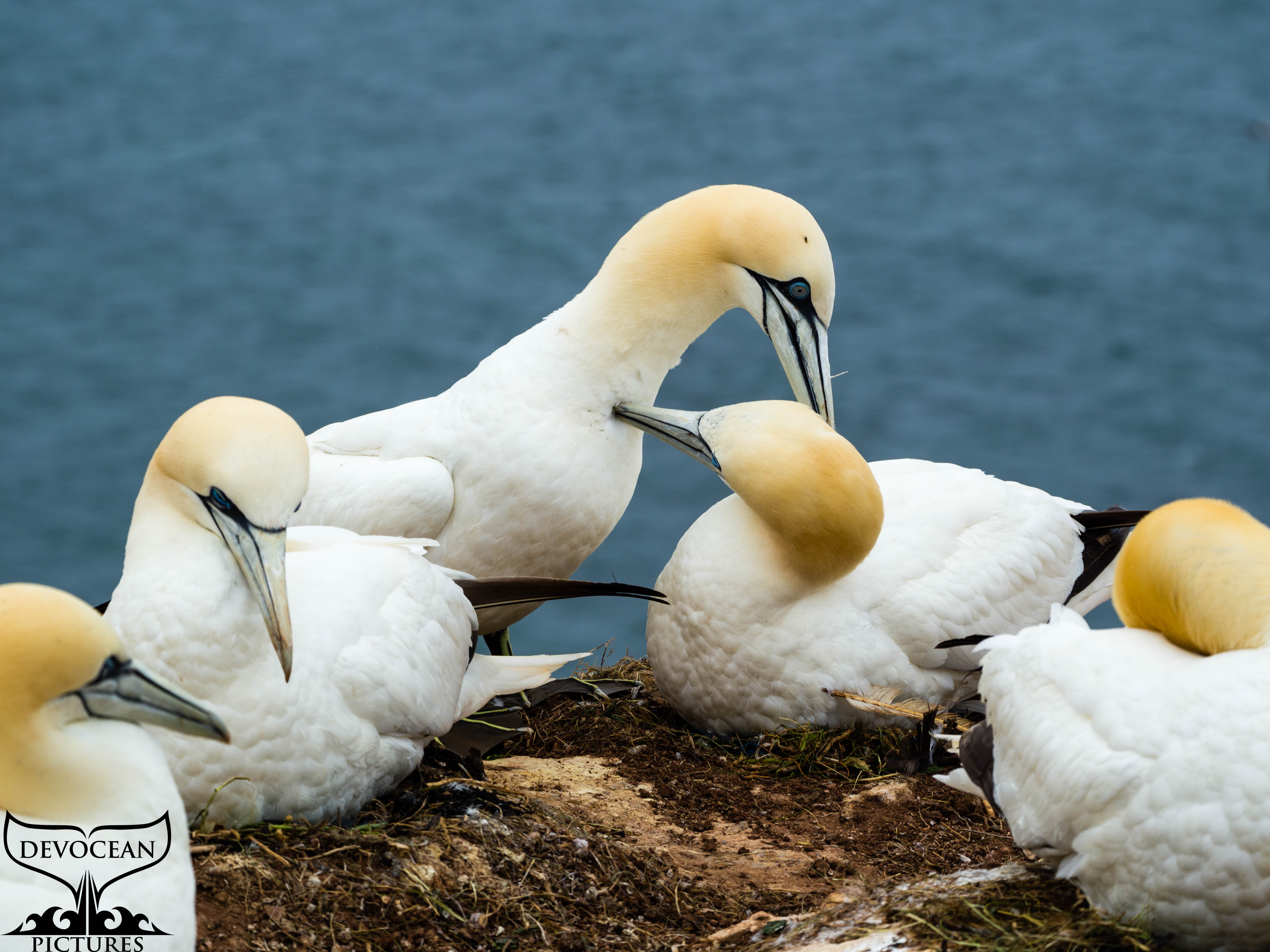 These days Heligoland is known for nesting birds and a huge population of two types of earless seals (Düne). It started with guillemots (and seagulls of course) and in 2001 the first pair of northern gannets (which should really be named greenfoot boobies) nested on the single rock known as “Lange Anna”. Today also razorbills and fulmars nest on the red cliffs of Heligoland, leaving speckles and their odour behind. The Ornithological Station Helgoland and Verein Jordsand inform tourists in their stations and additional tours about the local wildlife some of which I shall try to tell with the following pictures.