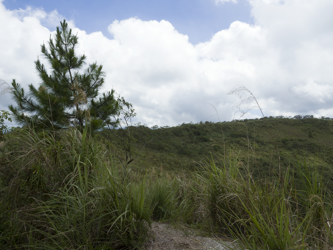 Als erstes sah ich auf der gegenüberliegenden Seite die Aussichtsplattform, inklusive einer chinesischen Reisegruppe. Dort war also die Treppe. Als zweites sah ich, dass gerade Wolken aufzogen. Fotos über den Kraterrand hinweg zum höheren Nachbarberg Lokon (1.580m) und weiter zum Meer hatten sich damit erledigt. Yoeri sah erst einmal gar nichts, sondern schöpfte bloß Atem. Dementsprechend freudig beseelt, starteten wir also den Rundgang. Doch Natur entschädigt selbst mit begrenzter Aussicht und schlecht gelaunt zu sein, wird schnell zu anstrengend.